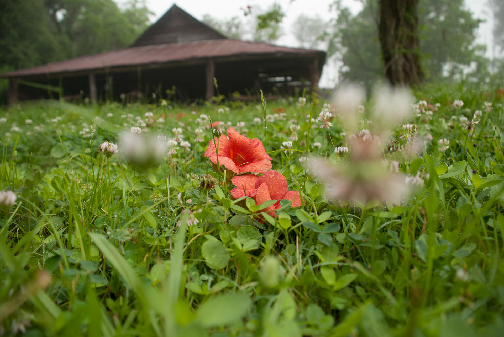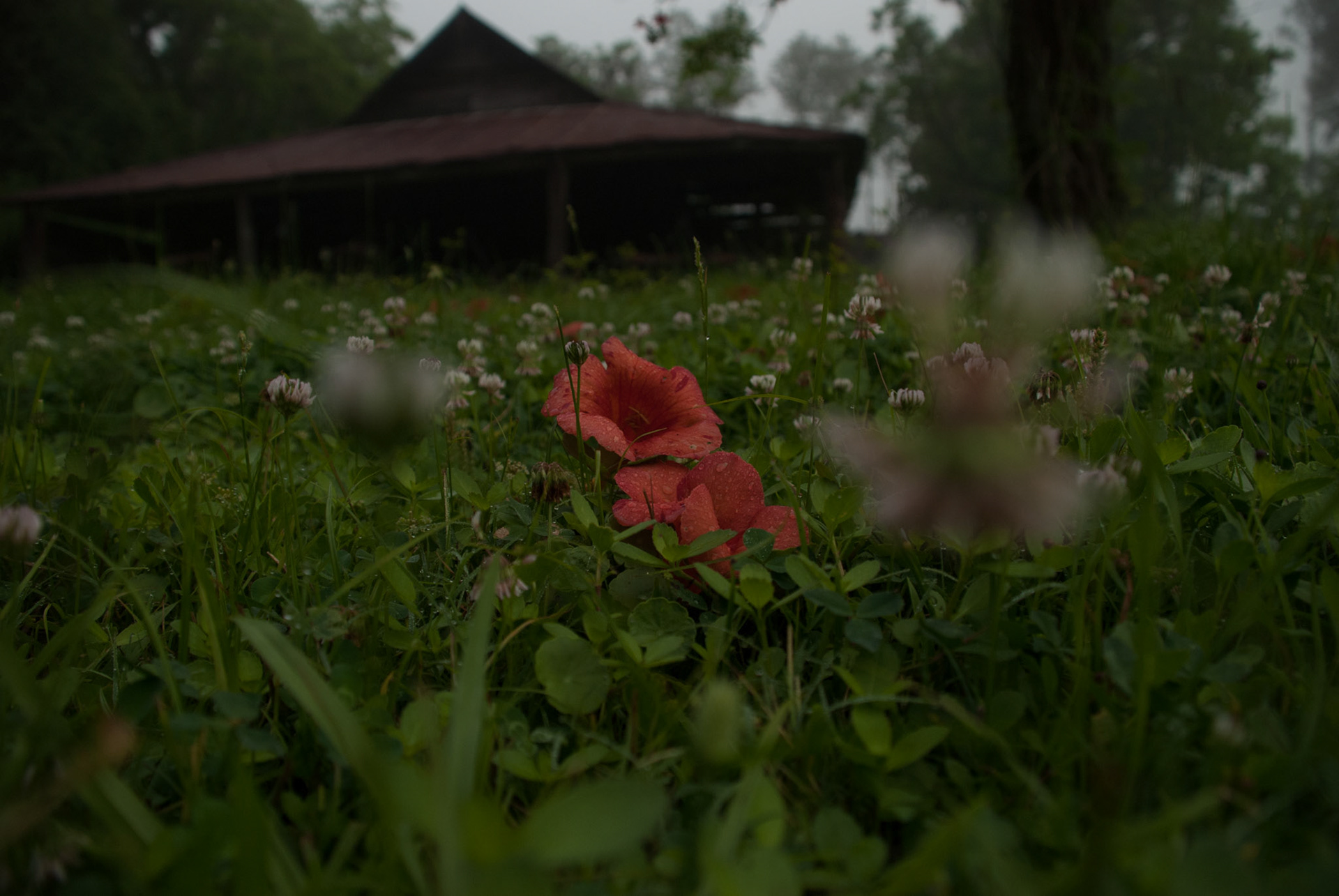 Standing behind the Chinese Magnolia tree. It's always the first to bloom.